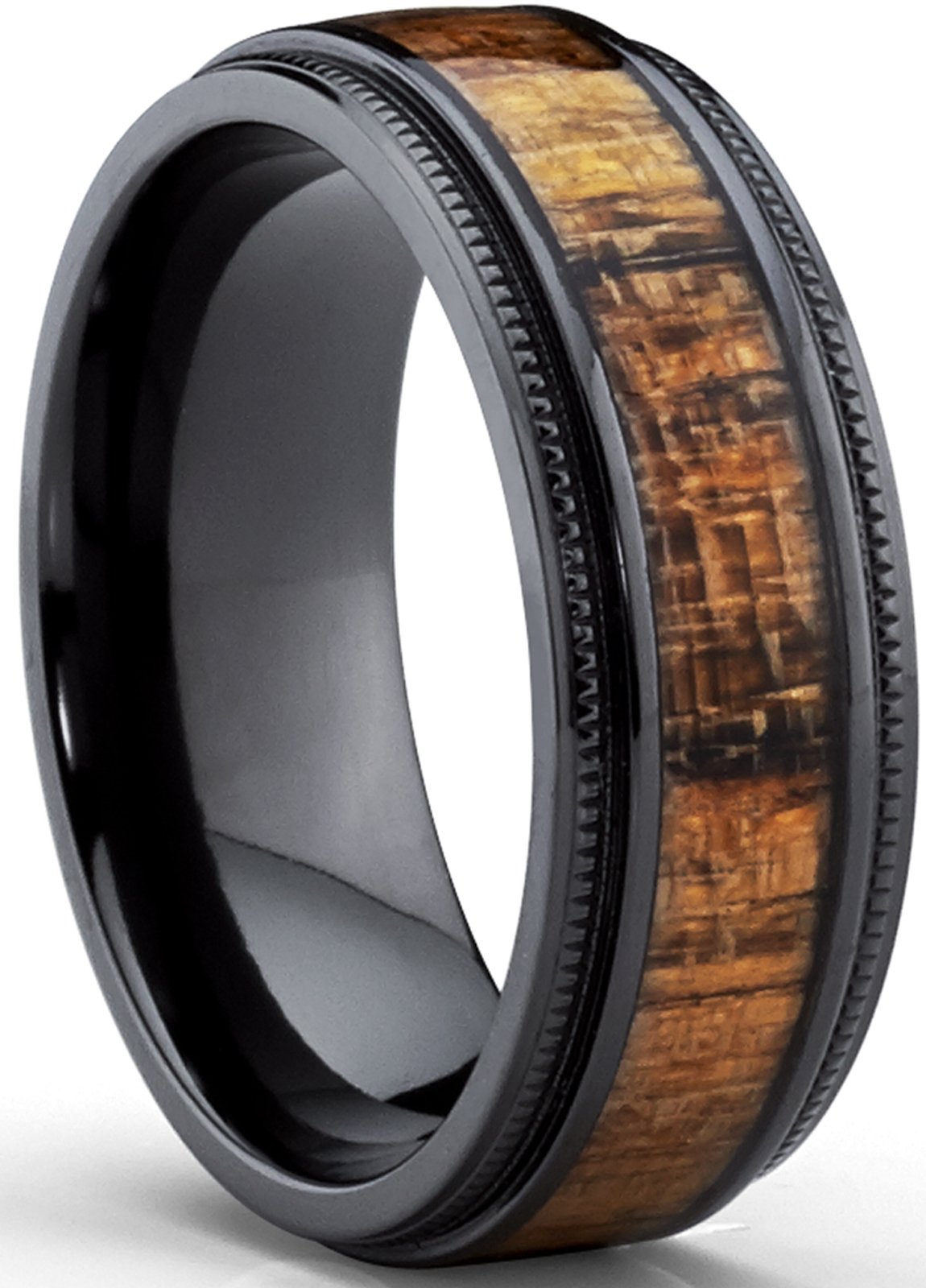 Strong but lightweight, titanium wedding bands are a great choice for grooms. Titanium ring wedding band, engagement ring with real wood inlay, 8mm comfort fit. His & hers black titanium wedding ring bands koa wood inlay 6&8mm rings. Wood wedding bands are the epitome of cool men's wedding bands. If you're simply shopping for a remarkable gift to give to the special man in your life, look no further. Customer rating for mens wedding bands by titanium jewelry: Black titanium band with embossed fish hooks. Custom laser engraved wood band box. 2 titanium rings wedding bands engagement with exterior laser engraving. A wide variety of wood wedding bands options are available to you, such as main stone, jewelry main material, and inlay technology. Rose gold ring with thin striped dark wood inlay. Our unique titanium rings are handcrafted by a master ring maker in boston ma and can be customized with any we create titanium rings with nearly every material imaginable. 5 of 5 based on 795 customer reviews.