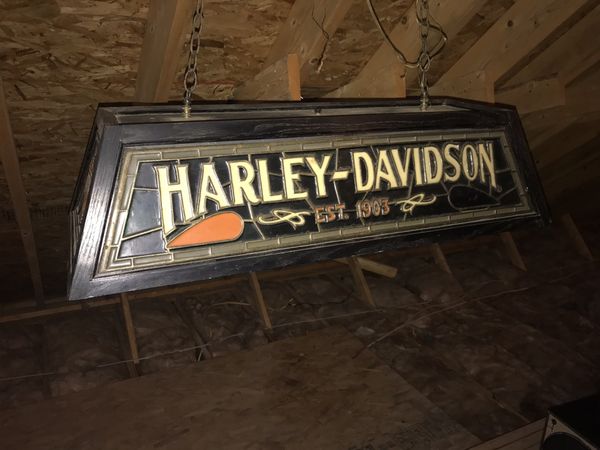 Retro Harley Davidson Pool Table Light.Works great! for ... from photos.offerup.com The legend rolls on in this truly unique harley davidson hd10 pool stick. Harley davidson pool table, 7', 8' or 9' we can finish the harley pool table in five finshes and two hardwoods. Whether you have a harley dyna, softail, sportster or touring model we have the right lights for your ride. Once on the website, type harley davidson 8ft radical flames. Pool table lighting can be purchased online or at your local hardware store. Featuring a durable injection molded light box housing and a translucent vacuum formed face that makes the quality of. Littman lights 1x4 home edition led pool table light, black aluminum. Nba milwaukee bucks black metal shade & chrome bar billiard pool table light.