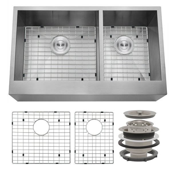 Just one of the many farmhouse & apron sink accessories on the sink boutique. Apron front sink with two basins. All of our sinks are made from the highest rated materials available. It includes a sink grid for each bowl, as well as a drain kit assembly for both drains. Lighter than natural stone or cast.